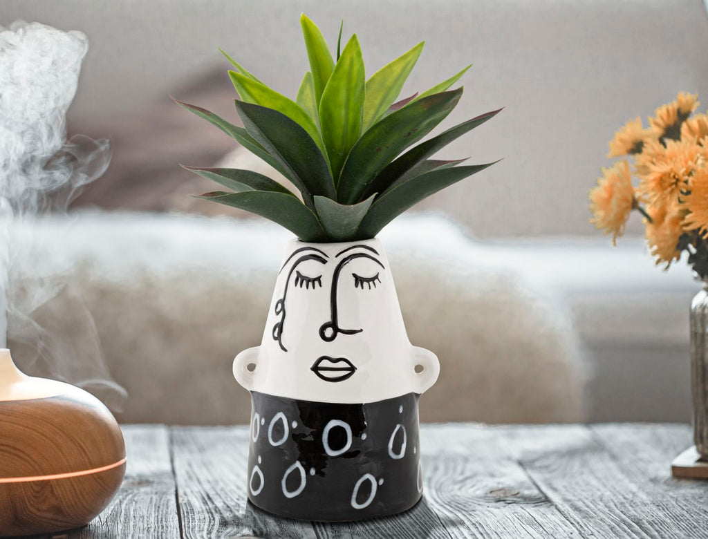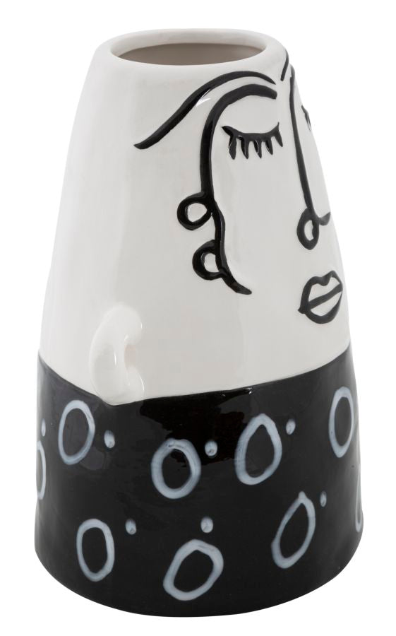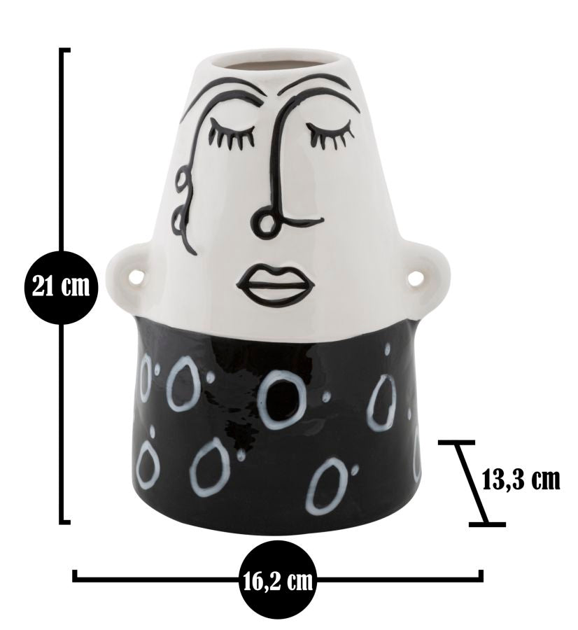 Vase Thinking Face 16,2x13,3x21 cm en porcelaine noire et blanche