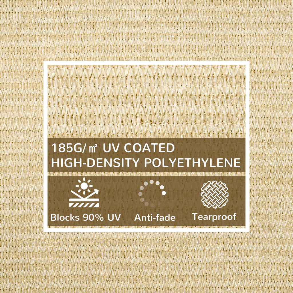 • MATERIALE RESISTENTE: Il materiale in HDPE con rivestimento UV da 185g/㎡ impedisce alla vela ombreggiante di seccarsi, strapparsi e sbiadire, prolungandone notevolmente la durata