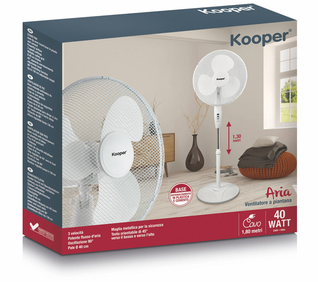 Ventilateur sur Pied 40cm Oscillant 3 Vitesses 40W Kooper Aria