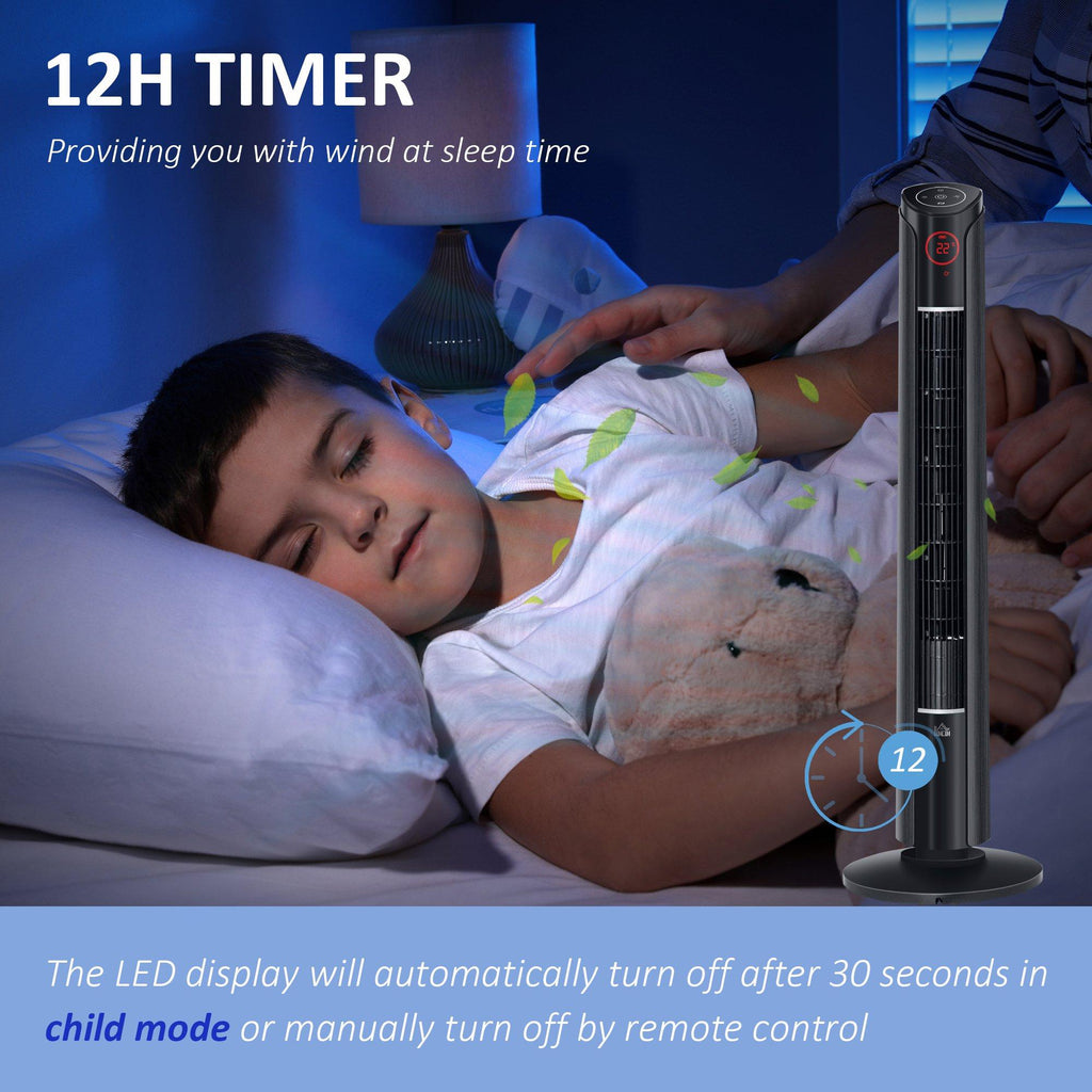 Ventilateur tour à 3 vitesses avec télécommande noire