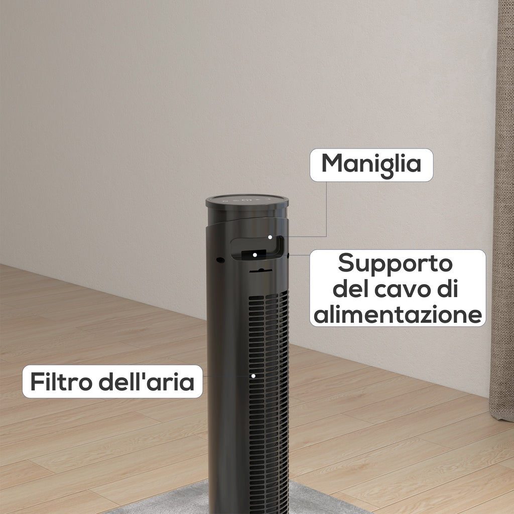 - Ventilatore a torre con telecomando, anche pannello di controllo: impostare vicino o lontano