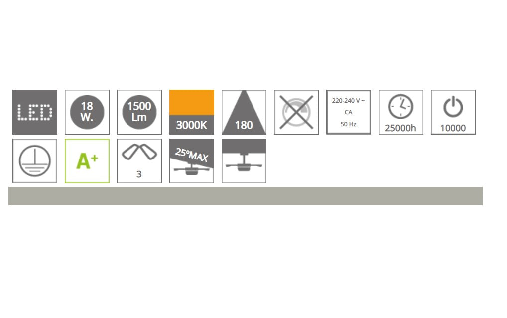- Puissance maximale de l'ampoule : 18W 3000K 1450lm IP20
