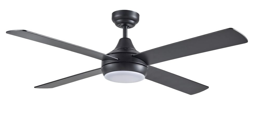 - Link Fan Noir LED et Télécommande Ventilateur de plafond noir avec structure en acier et 4 pales en contreplaqué massif diamètre 122 cm