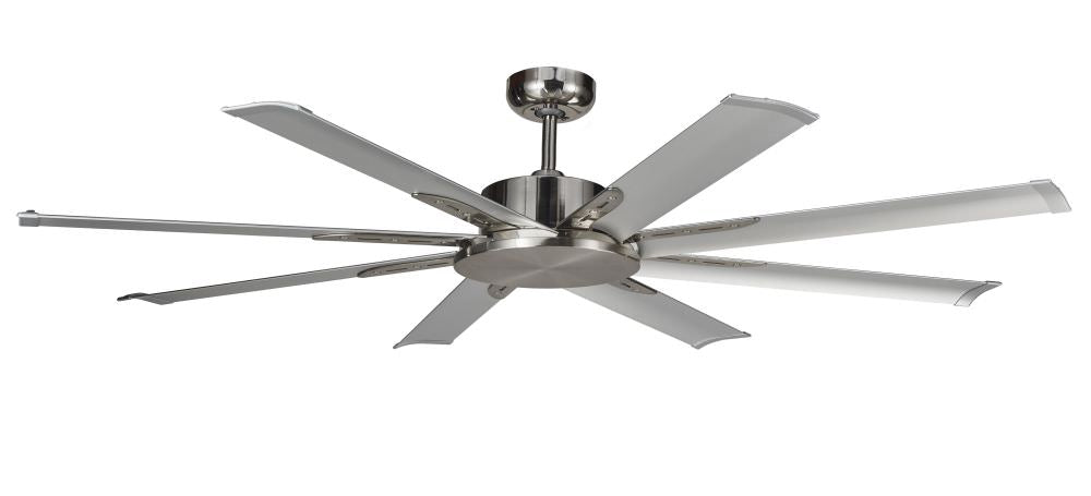 - Ventilateur de plafond en aluminium avec 8 pales en Silver Silver diamètre 165 cm parfait pour les pièces de 25 à 35 mètres carrés