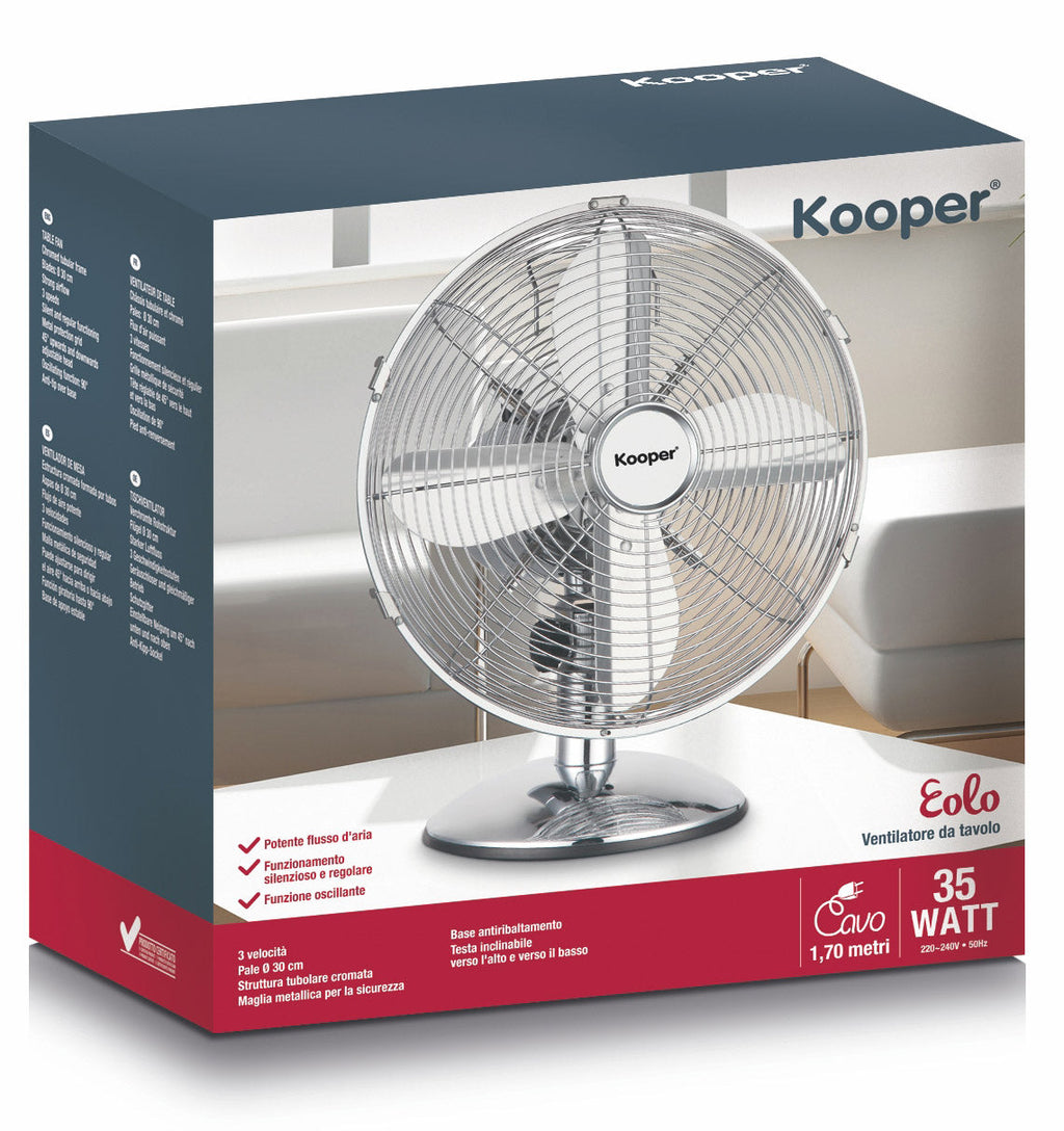 Ventilateur de Table 30cm Oscillant 3 Vitesses 35W Kooper Eolo Chrome