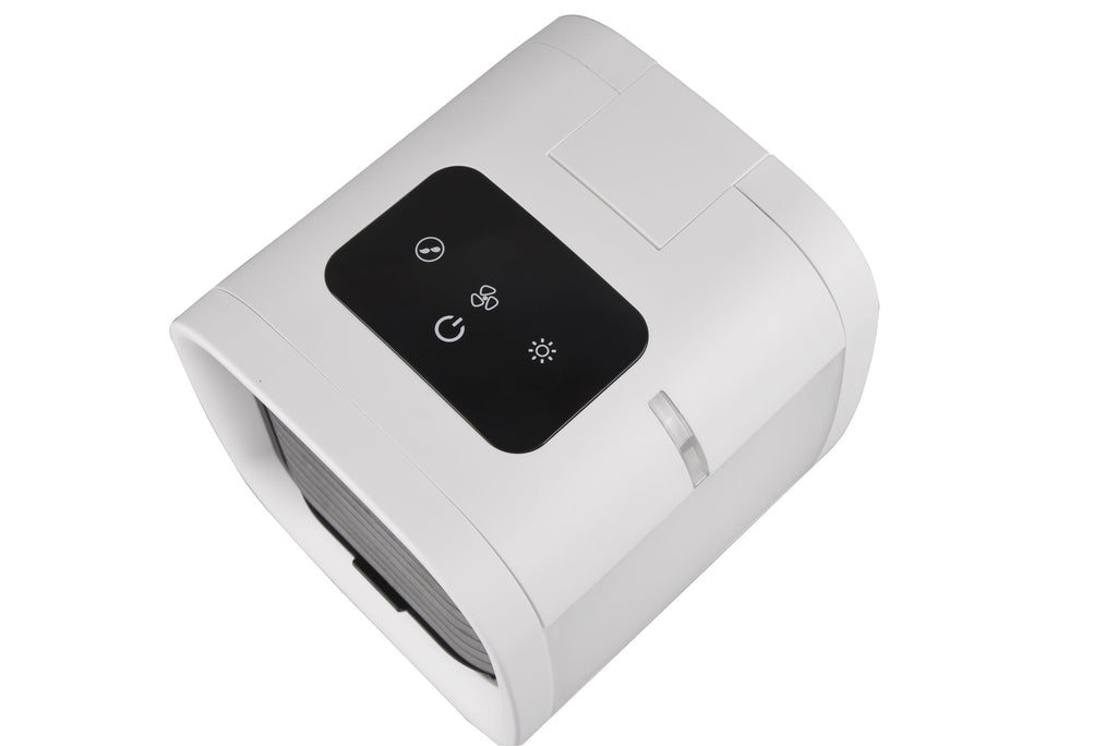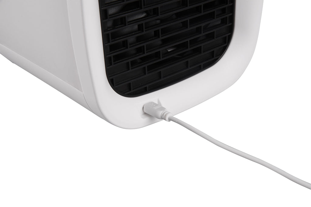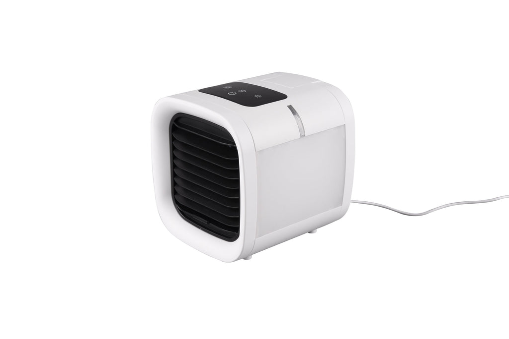 Icecube Ventilateur De Table Cube Blanc Rechargeable Usb Écran Tactile Rgb Effet Coloré Avec Réservoir D'eau Pour Effet Nébuliseur H.17,5Cm