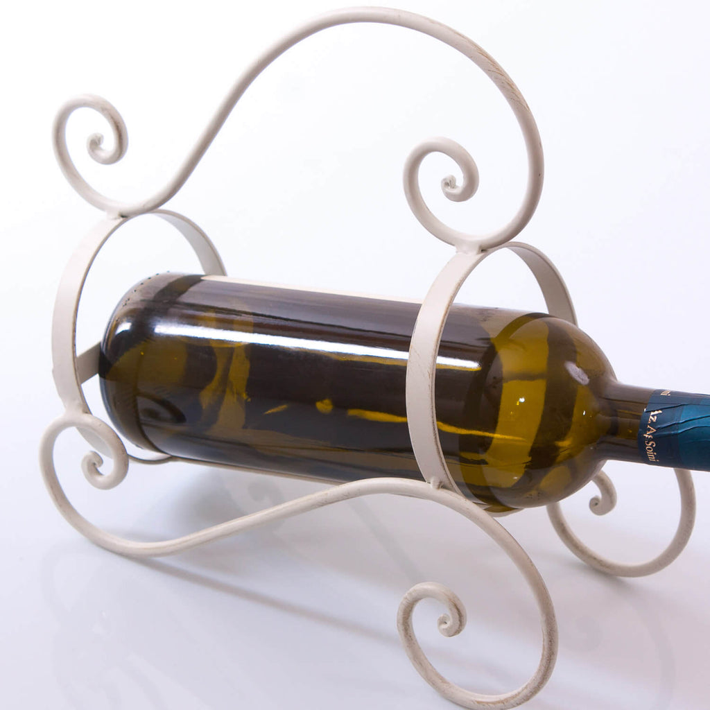 Portabottiglie in metallo bianco. Spazio per nr.1 bottiglie.