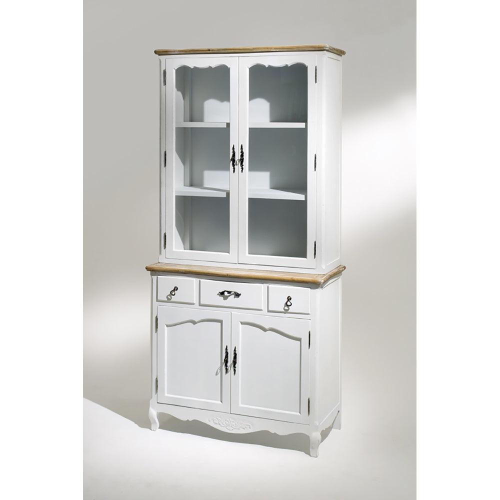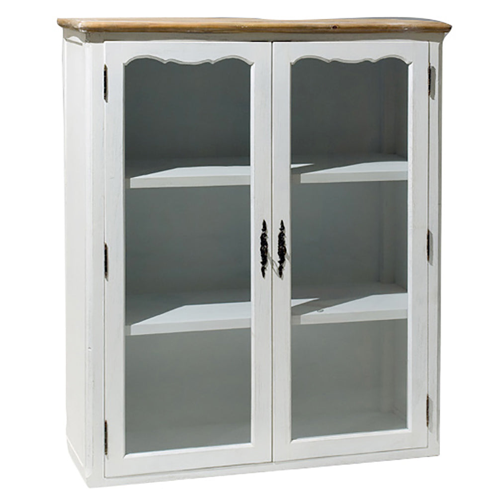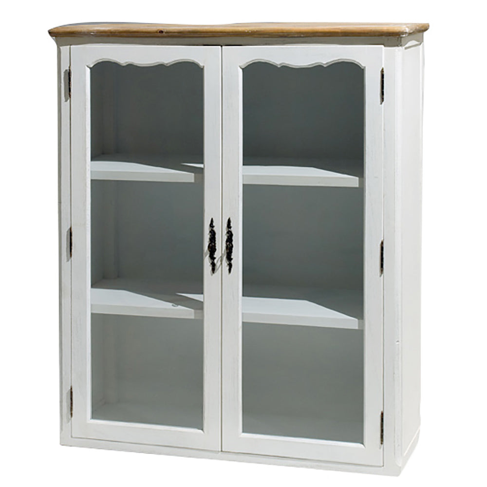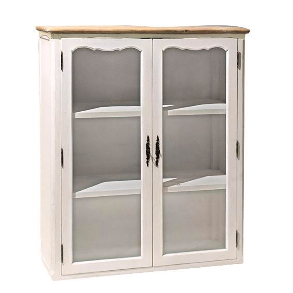 Vitrine Bois 2 Portes 3 Etagères 90x32,5x114cm Adami Country Blanc