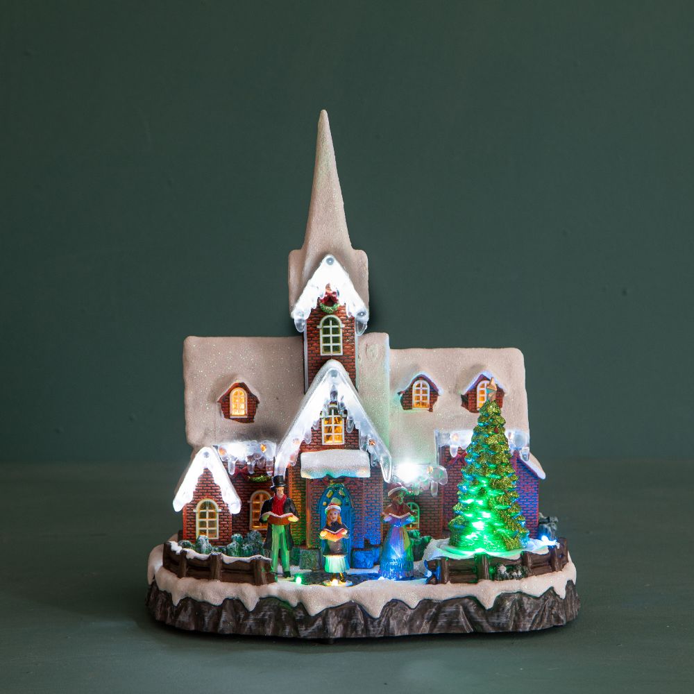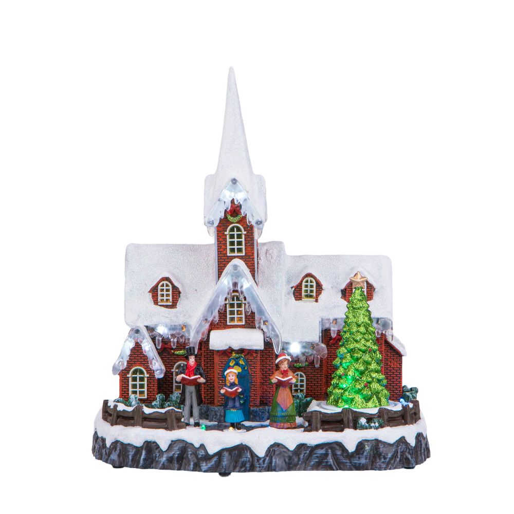 Village de Noël Lumières d'église Musique et mouvement 31,5 cm en résine