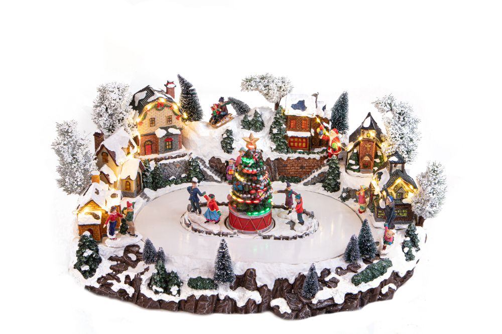 Village de Noël avec Lac Gelé, Lumières, Musique et Mouvement 49 cm en Résine