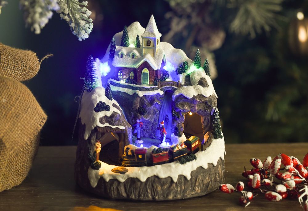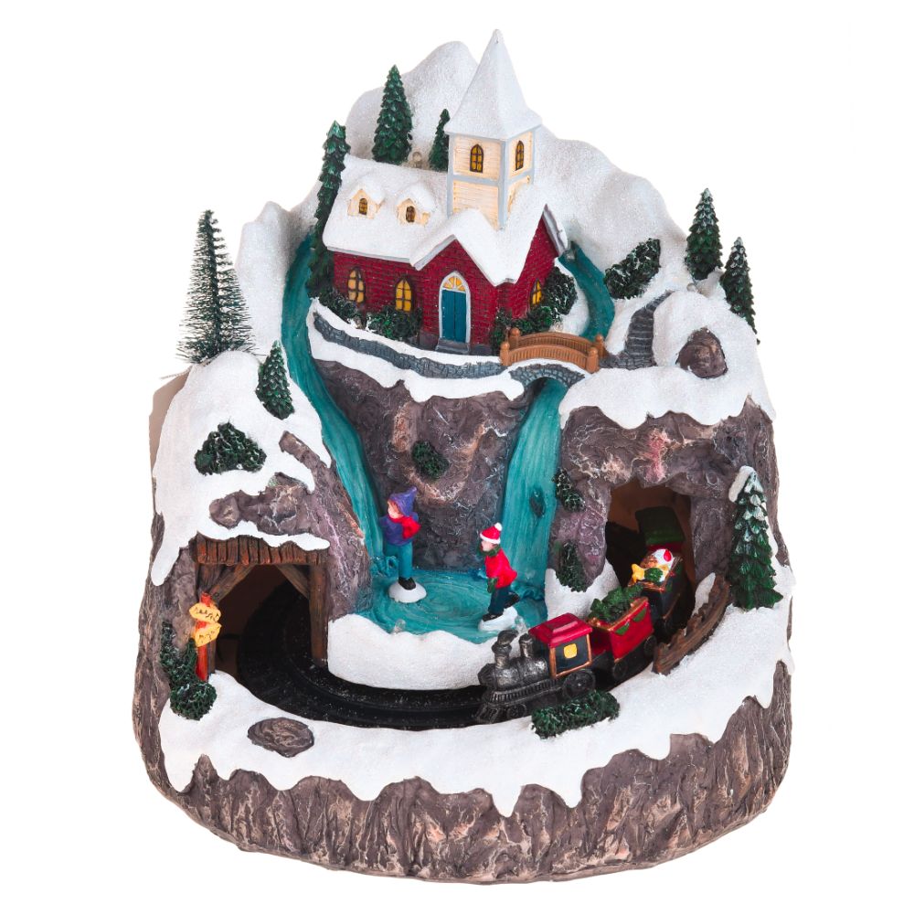 Villaggio Natalizio con Treno Luci Musica e Movimento 23,5 cm in Resina