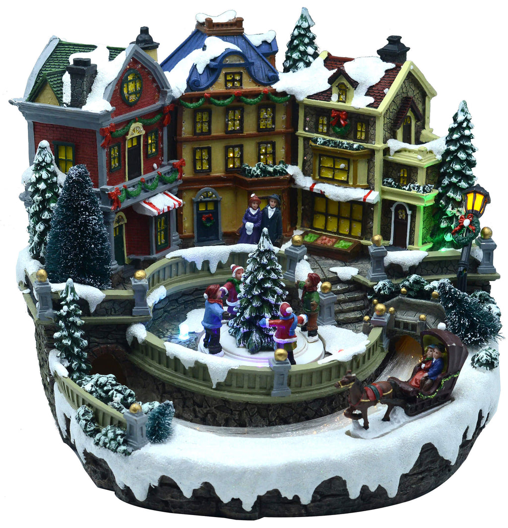 Village de Noël en sapin en résine avec lumières et sons 32x30xh26,5 cm Adami