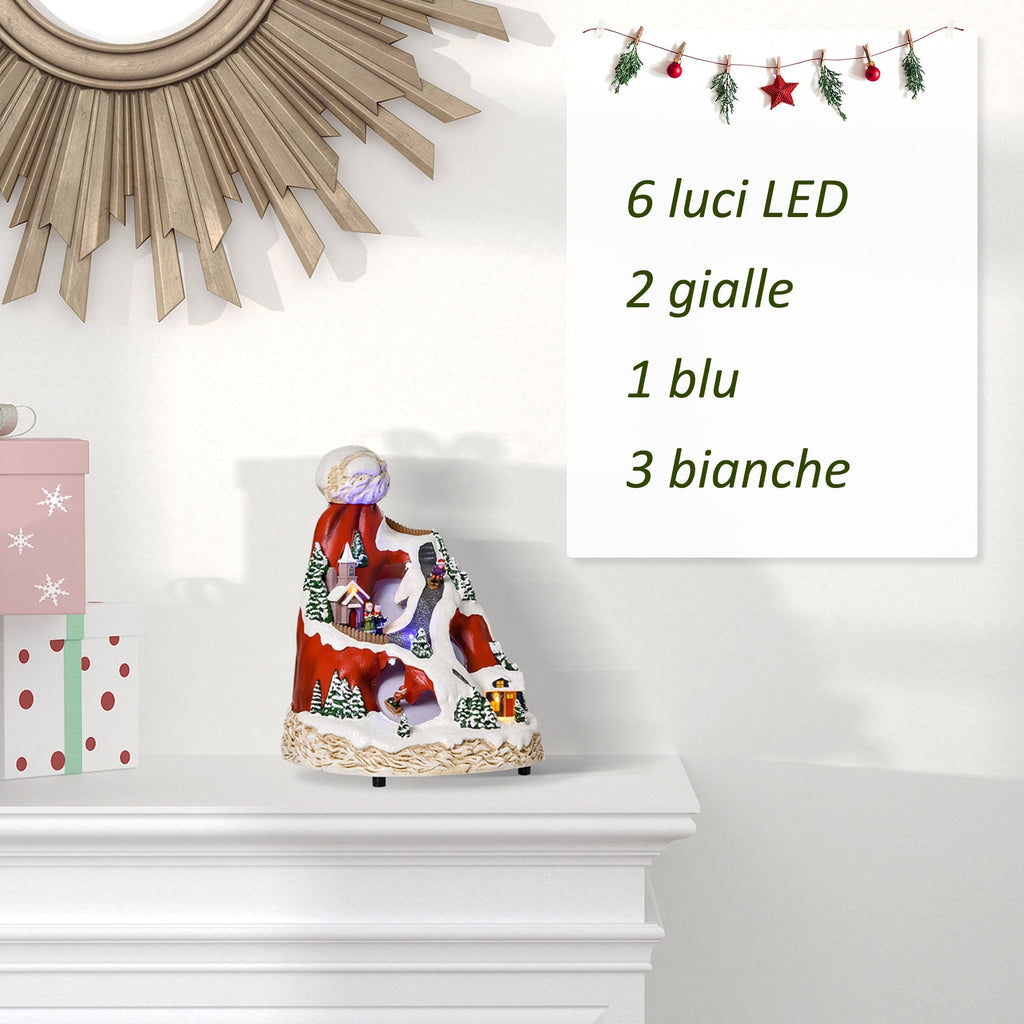 Village de Noël lumineux avec des skieurs musicaux et des lumières LED multicolores