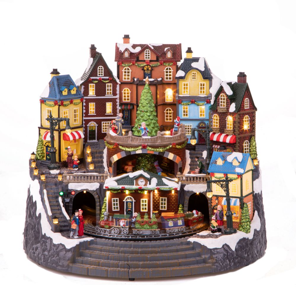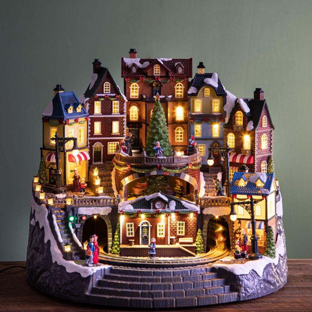 Village de Noël Piazza Grande Lumières Musique et Mouvement 42,5 cm en Résine