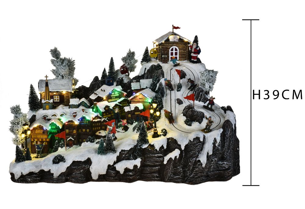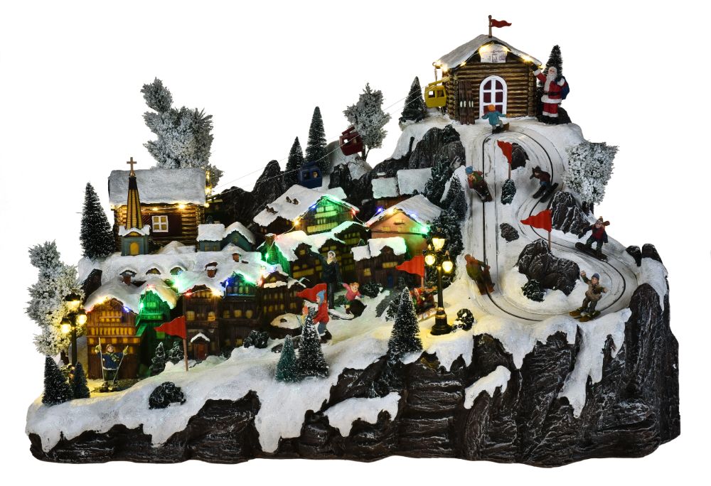 Village de Noël Lumières de Piste de Ski Musique et Mouvement 64,5 cm en Résine