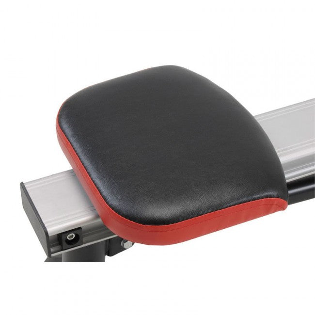 Le siège du rameur coulisse sur un rail en aluminium qui assure un mouvement fluide sans forcer les articulations.