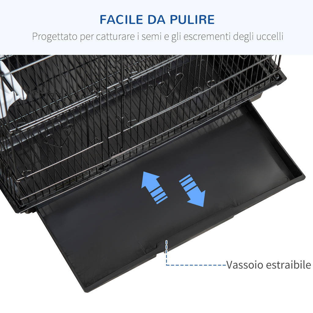 Voliera Gabbia per Uccelli 46,5x35,5x92 cm in Metallo e Plastica Nero