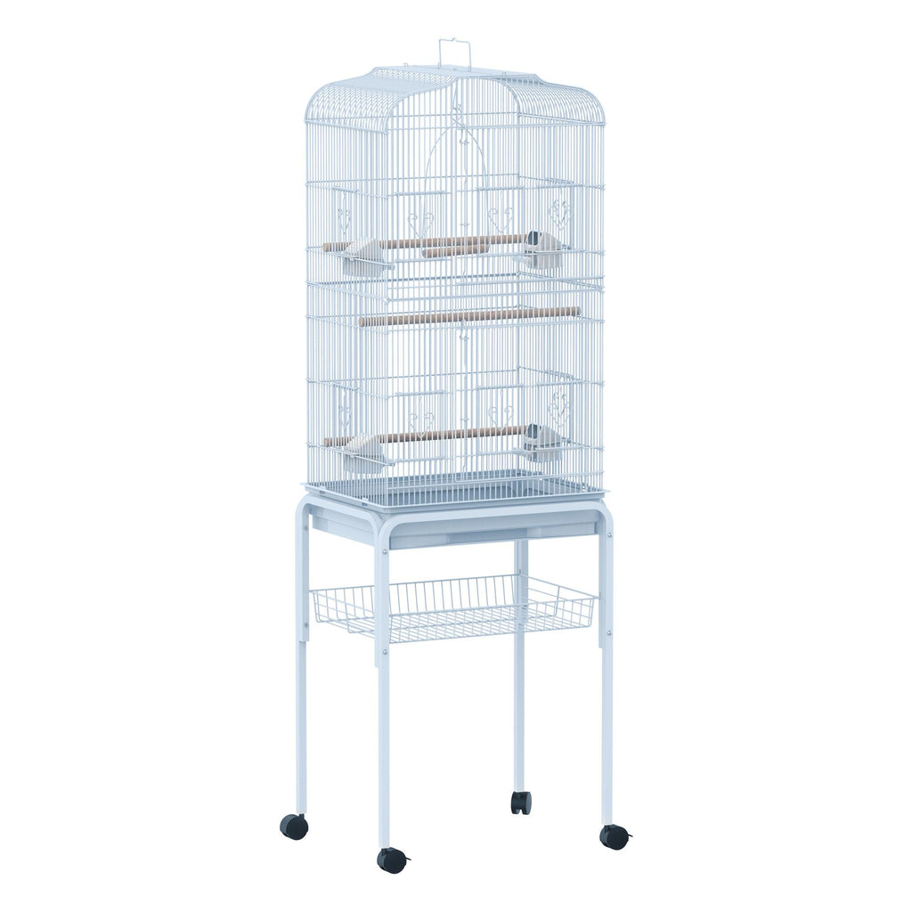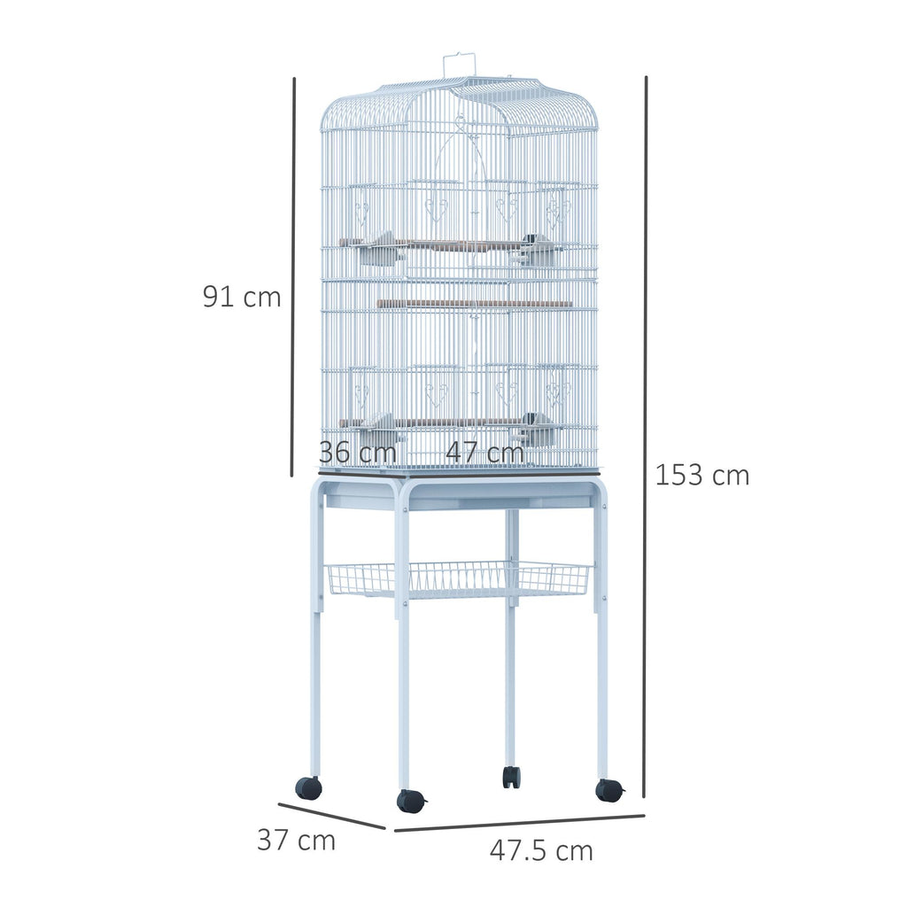 Volière cage à oiseaux 47,5x37x153 cm avec roulettes en métal blanc
