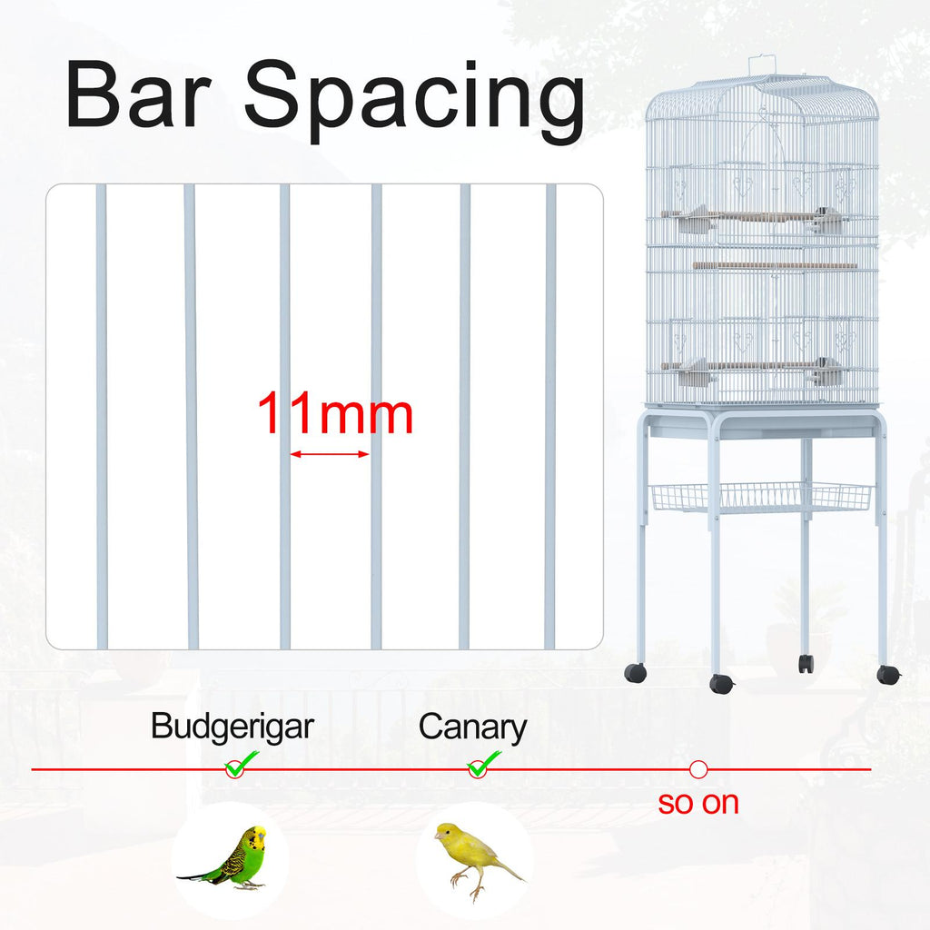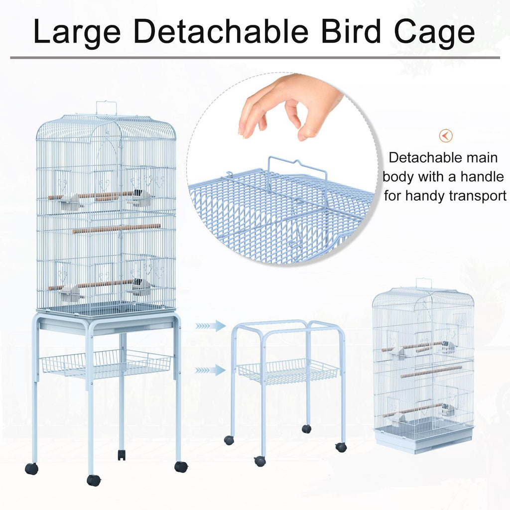 - STRUCTURE INTERNE : L'intérieur de la cage est composé de 3 perchoirs en bois, d'une balançoire à oiseaux et de 4 gamelles en plastique. ÉTAGÈRE INFÉRIEURE : Sous la cage à oiseaux se trouve une étagère qui vous permet de garder tout ce dont vous avez besoin en ordre.