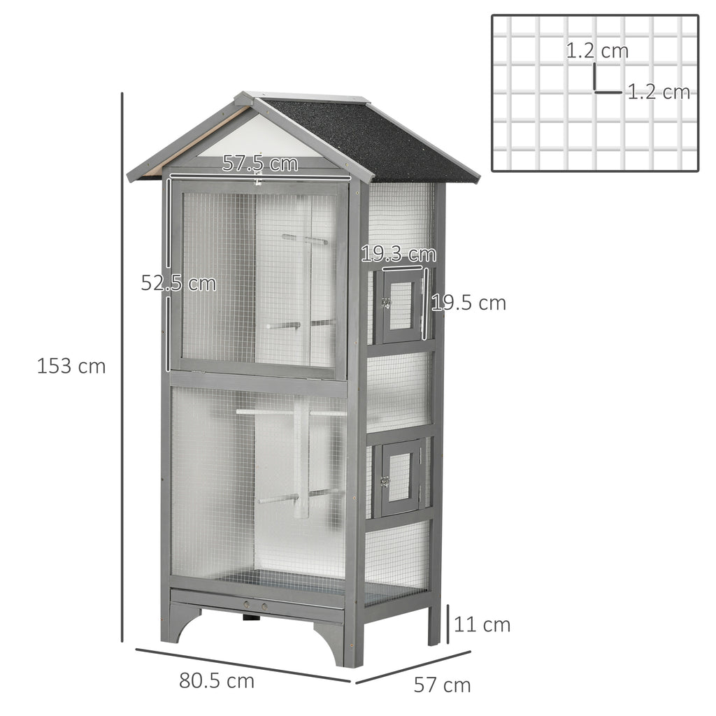 Volière d'extérieur pour cage à oiseaux 80,5x57x158,5 cm Toit en asphalte en bois de sapin gris clair