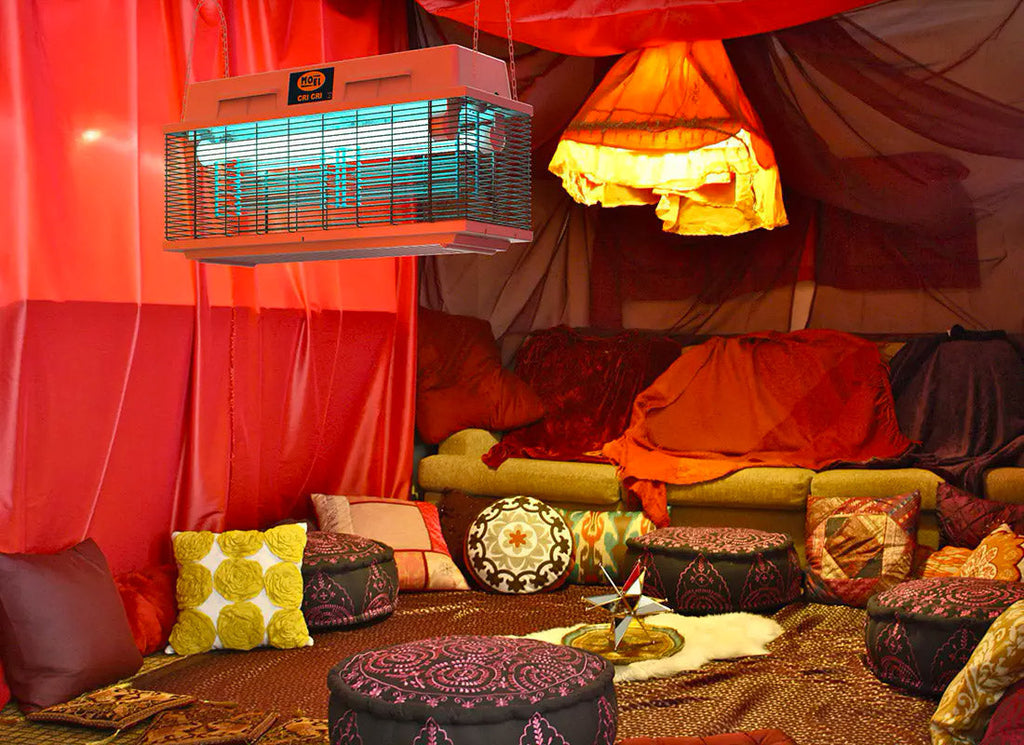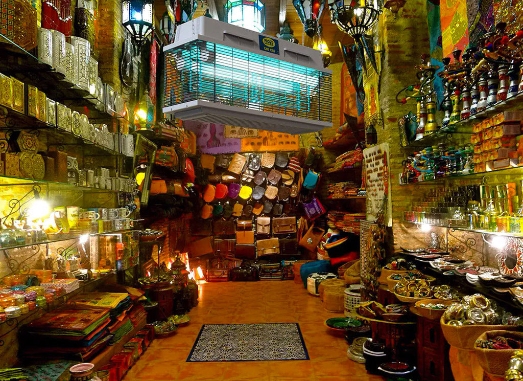 Equipé de 2 lampes UV-A de 40W , le modèle offre une puissance totale de 80W et une portée d'environ 15-18 m. Les douilles sont étanches, afin de garantir le parfait fonctionnement des lampes, à la pluie, à la poussière et aux vapeurs.