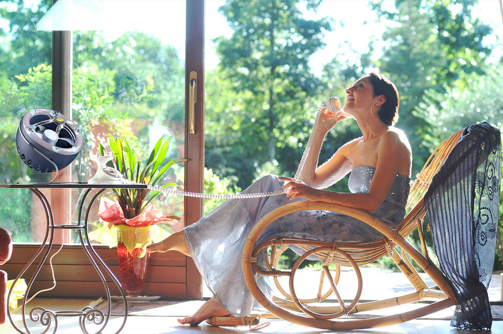 Le DESIGN unique et original s'associe à une grande robustesse de la structure et à la possibilité de positionnement en toute sécurité à l'extérieur (terrasses, piscines, jardins ?) grâce à la protection IP34 contre l'eau et la poussière. Le ventilateur est sûr et s'arrête en cas de contact accidentel.