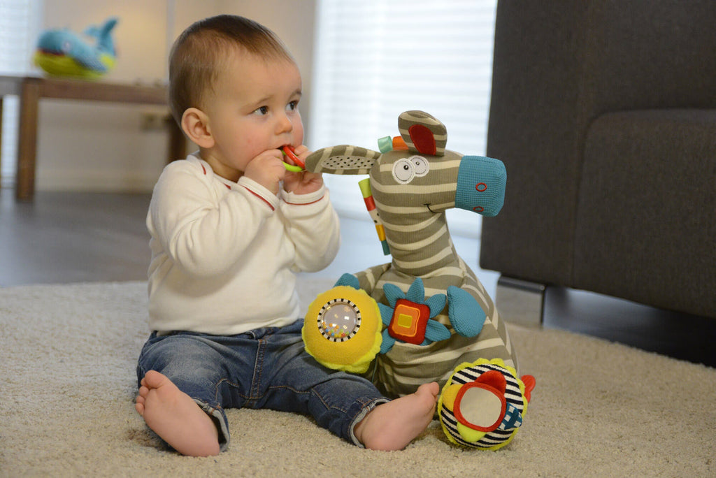 Caractéristiques techniques Peluche d'activité zèbre pour enfant aux doux sons multicolores
